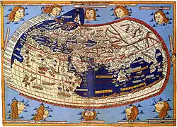- Stadtbibliothek Mainz: Weltkarte, kolorierter Holzschnitt, Holl-Druck 1482