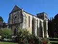 - Im Weiler Combes steht die einschiffige romanische Kirche Saint-Palais mit einem tympanonlosen Portal mit seitlich eingestellten Säulen, die – anstelle eines Kapitells – am oberen Ende wie gedrechselt wirken. Zwischen den beiden undekorierten Archivolten befindet sich ein weiterer Bogen, der mit einem Zackenstabprofil verziert ist; das Portal wird von einem reichdekorierten Bogen (Diamantstab und Zackenstab) überfangen. Die mit einem Glockengiebel versehene Kapelle ist ebenfalls seit 1973 als Monument historique[5] anerkannt. Mehrere sarkophagähnliche Grabsteine mit lateinischen Inschriften befinden sich im Umfeld der Kirche.
