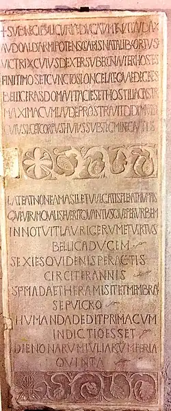 Äußere Bedrohungen führten im 5. Jahrhundert zu Änderungen in der Ämterstruktur.[15] Ligurien verschwand zeitweise als Name, die Provinzen hießen nun Alpes Cottiae und Alpes Appenninae. Sie erstreckten sich vom Susatal bis zum Oberlauf des Tiber. Während Genua zunächst Teil der letzteren Provinz wurde, wechselte es in die Alpes Cottiae. Unter Odoaker und Theoderich, dem Ostgotenkönig, erlangte die Stadt eine gewisse Selbstständigkeit und ihr Hafen blieb bedeutend. Gegen den Widerstand der Ostgoten eroberten die Armeen Ostroms bis 553 Ligurien.