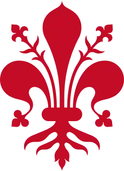- Die Guelfenlilie war im Hoch- und Spätmittelalter in den oberitalienischen Kämpfen zwischen Ghibellinen und Guelfen das Symbol der papsttreuen Guelfenpartei. Es leitete sich vom Lilienwappen des Kapetingers Karl von Anjou ab, der mit päpstlicher Unterstützung die Kaiserpartei der Staufer bekämpfte.[8] Deren ghibellinische Anhänger verwendeten hingegen den Reichsadler als Symbol. Die Lilie ist daher in zahlreichen Wappen einst guelfisch gesinnter italienischer Adelsgeschlechter oder auch Kommunen (etwa von Bologna) zu finden.