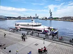 - ↑ a b Henrik Lund: Hurtigfærgen til Samsø fik et lift fra Kina: Fredag svævede den på plads i Aarhus Havn, Århus Stiftstidende, 19. Februar 2021. Abgerufen am 9. Februar 2024.