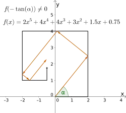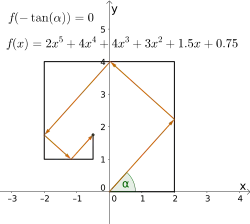 Zu einem gegebenen Polynom werden von einem gemeinsamen Punkt ausgehend zwei Polygonzüge mit und Streckenabschnitten konstruiert. Enden diese in einem gemeinsamen Punkt, so ist die Gegenzahl des Tangens ihres Schnittwinkels am gemeinsamen Ausgangspunkt eine Nullstelle des Polynoms.