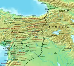 Zur Zeit der römischen Republik existierte noch keine feste Ostgrenze, die Verteidigung der Randgebiete wurde den verbündeten Klientelkönigreichen überlassen, die eine Pufferzone zwischen Rom und Parthien bildeten. Rom begnügte sich zunächst noch mit der Ausübung einer indirekten Herrschaft. Die Übernahme des Supramats über diese Gebiete erfolgte erst gegen Ende der Republik und folgte keinen festen Regeln. 64 v. Chr. gründete Gnaeus Pompeius Magnus auf den Trümmern des Seleukidenreiches die römische Provinz Syria. Die neue Provinz lag günstig an der östlichen Peripherie des römisch beherrschten Mittelmeeres und ermöglichte mit ihren Flussübergängen den direkten Zugang zu parthischen und asiatischen Handelsrouten.[26] Ihr Schwachpunkt war jedoch der Grenzabschnitt am Mittellauf des Euphrat, der gefährlich nahe an die Hauptstadt Antiochia am Orontes heranreichte und somit keinen Schutz vor den schnellen Reiterarmeen der Parther bot. Das neu eroberte Gebiet wurde durch ein über 1000 Kilometer langes Straßensystem erschlossen und ebenfalls mit Wachturm- und Kastellketten gesichert. Zusätzlichen Schutz boten die Stadtfestungen von Samosata, Zeugma, Hierapolis, Sura und Dura Europos, die mehrere Voraussetzungen wie strategische Lage, Garnisonsstandort und Handelsplatz in sich vereinigten.[27] Der Verlauf und die einzelnen Schutzbauten des orientalischen Limes sind bis heute nicht genau bekannt. Zum Unterschied der Rhein-Donau-Grenze im Westen konnte sich der östliche Limes aufgrund der ausgedehnten Wüstensteppen, der ständig wechselnden Gebietsgewinne und Rückzugsgefechte Roms gegen die Perser zwar nie als durchgehender Schutzwall etablieren. Dennoch gelang es den Römern, ihre Vormachtstellung im Nahen Osten für die nächsten 700 Jahre zu behaupten.