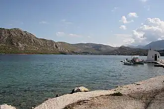 In der Antike wurde die Lagune „Es'chatiotis“ (Εσχατιώτις) oder „Gorgopis“ (Γοργωπίς) genannt, ein Name, der von der Tochter der Nymphe Gorge Tou Thegarea (Γόργη του Θεγαρεα) stammt, die im See lebte. Im Gebiet nahe der schmalen Seerinne wurden Spuren menschlicher Besiedlung aus Proto-Helladischer Zeit gefunden, was darauf hindeutet, dass das Gebiet seit dem 3. Jahrtausend v.C. bewohnt ist[4][2]