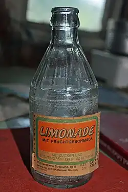 Der französische Ausdruck limonade, abgeleitet aus limon (Zitrone), wurde im 17. Jahrhundert ins Deutsche übernommen und bezeichnete bis ins 19. Jahrhundert ausschließlich ein Erfrischungsgetränk aus Zitronen. Das auch in anderen Sprachen gebräuchliche Wort für die Zitrone geht auf das persische Wort limun zurück, das dort diese Frucht bezeichnet. Das Wort kam auf dem Handelsweg in das Arabische, von wo es in andere europäische Sprachen gelangte.[12] Im 19. Jahrhundert erweiterte sich die Bedeutung des eingedeutschten Wortes Limonade auf ähnlich hergestellte Getränke mit anderen Früchten. Das Wort wurde so zur allgemeinen Verkehrsbezeichnung für Erfrischungsgetränke.