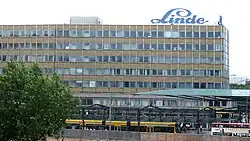 Das Lindehaus war früher das Verwaltungsgebäude des VEB Komplette Chemieanlagen an der Wilsdruffer Straße 27–29 in Dresden. Markant war nach der Wende der Linde-Schriftzug, dessen helles Blau die Ansicht der historischen Silhouette von der Neustadt aus erheblich störte.