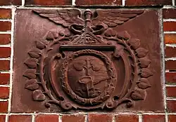 - ↑ Foto des Kürzels an einem Relief über den Direktorenvillen