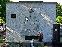 Auf dem Lindenfriedhof befindet sich ebenfalls das Denkmal „Christus der göttliche Kinderfreund“ des schlesischen Bildhauers Paul Ondrusch. Das Denkmal wurde für 76 Kinder, die 1919 bei einem Brand des Kinotheaters „Stadtgarten“ ums Leben kamen und hier in einem Massengrab beigesetzt wurden, aufgestellt. Auf dem Kindergrabdenkmal befand sich bis 1945 die deutsche Inschrift „Lasset die Kindlein zu mir kommen“, ein bekanntes Bibelzitat aus den Evangelien.[1][2] Das Denkmal zeigt sich heute in veränderter Form, es fehlen die ursprüngliche Treppe, der obere abschließende Teil der Wand und auf der Wandfläche um die Skulpturen wurde eine weitere Schicht Zement mit einer groben Oberfläche aufgetragen.