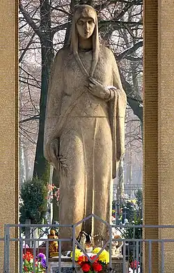 Während des Ersten Weltkriegs wurden hier gefallene Soldaten begraben, darunter 196 Deutsche, 230 Russen, 16 Rumänen, Serben, Franzosen und Italiener. An diese erinnert das „Denkmal für die Gefallenen im Ersten Weltkrieg“ von 1927 mit der Skulptur „Die Trauernde“ vom Bildhauer Hanns Breitenbach.