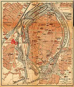- Bismarck-Denkmal von Emil Hundrieser (1903), bis 1934 vor dem Holstentor befindlich