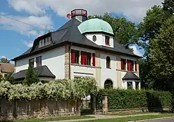Die zweigeschossige Villa entstand etwa im Zeitraum 1910/1920 im Jugendstil auf einem quadratischen Grundriss. Sie gehörte als Fabrikantenvilla zum damals benachbarten, im Bereich des Samenanbaus und des Samengroßhandels tätigen Unternehmens Carl Beck & Comp. Bedeckt ist das verputzte Haus durch ein Walmdach, aus welchem eine, die Erscheinung des Gebäudes dominierende, große Haube herausragt. Es besteht eine von Säulen getragene Vorhalle. Die Fassade wird durch Pilaster gegliedert.