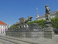 Der Lindwurmbrunnen auf dem Neuen Platz in Klagenfurt am Wörthersee aus dem 16. Jahrhundert stellt das Wahrzeichen und ihr Wappentier dar, einen Lindwurm.[1]