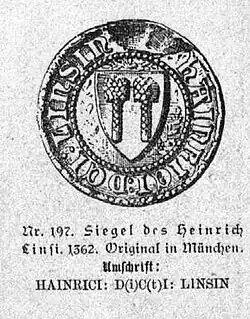1362 gab es einen Heinrich (von Rothenstein) zu Linsen, von dem ein Siegel mit zwei Streitkolben erhalten ist.