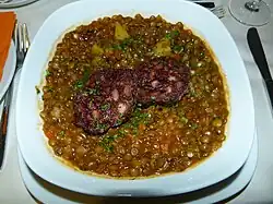 Linsen sind eines der zuerst kultivierten Gemüse[1] und Eintopfgerichte mit dieser Hülsenfrucht sind bereits aus der altbabylonischen Küche um etwa 1700 v. Chr. bekannt.[2] Frühe Kochrezepte für Linseneintopfgerichte finden sich unter anderem um 200 n. Chr. im ausgehenden antiken Griechenland bei Euthymus[3] und im 1. Jahrhundert n. Chr. beim römischen Feinschmecker Apicius.[4] Auch das Alte Testament erwähnt ein Linsengericht. Verglichen mit anderen Nahrungsmitteln waren Linsen zu allen Zeiten verhältnismäßig preiswert und demzufolge galten Linsengerichte noch im Mittelalter als „Armennahrung“.[4]
