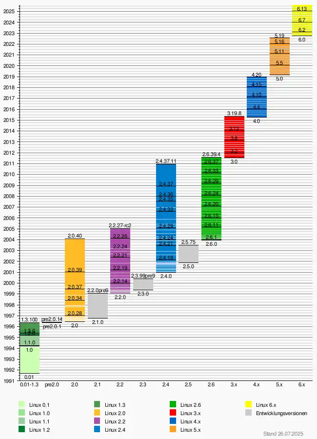Die frühen Kernelversionen (0.01 bis 0.99) hatten noch kein klares Nummerierungsschema. Version 1.0 sollte die erste „stabile“ Linux-Version werden.