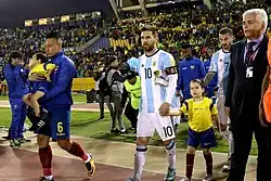 Am 12. August 2016 gab Messi seinen Rücktritt vom Rücktritt bekannt.[122] Mit seinem Länderspieltreffer am 1. September 2016 im WM-Qualifikationsspiel gegen Uruguay holte Messi mit 56 Toren in 114 Spielen den Rekordschützen der argentinischen Nationalmannschaft Gabriel Batistuta (56 Toren in 78 Spielen) ein und baute später den Rekord weiter aus. Am 10. Oktober 2017 erzielte Messi in der Qualifikation zur Weltmeisterschaft 2018 alle drei Tore zum 3:1-Sieg in Ecuador und sicherte Argentinien damit die WM-Teilnahme am letzten Spieltag.[123]