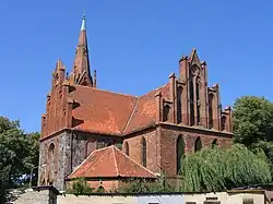 - die römisch-katholische Pfarrkirche Mariä Himmelfahrt, ein gotischer Hallenbau aus der Wende vom 13. zum 14. Jahrhundert, erbaut aus Granitblöcken und Backsteinen und 1863 umfassend im neugotischen Stil umgebaut. Die bis 1945 evangelische Stadtkirche besteht aus Chor, Langhaus, Querschiff und einem hohen Turm. In den Chorwänden sind Fragmente der Steinmauern des Vorgängerbaus erhalten geblieben. Im Inneren gibt es farbige Gewölbe und eine gotische St.-Petrus-Skulptur aus dem 15. Jahrhundert. Im Turm befindet sich eine Gedenktafel aus dem Jahr 1990, die an den 50. Jahrestag der großen Deportation von Polen aus den östlichen Grenzgebieten nach Sibirien durch das NKWD erinnert.