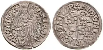 - ↑ Heinrich Ihl: Das Münzwesen der Grafen und Fürsten zur Lippe 1528–1913. Band 2: Die Münzen. Bonifatius-Verlag, Paderborn 2016, ISBN 978-3-89710-641-3, Kapitel Münzen des Grafen Simon V. (1511–1536), Graf ab 1528. S. 7.