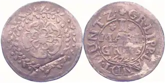 - ↑ Beschreibung des Guldengroschens bei www.coingallery.de; abgerufen am 17. März 2020