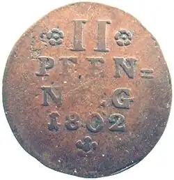 | 1812 bis 1825 | Jobst Henrich Trebbe | * 28. Jan 1807 in Lemgo;[17][18] Kupferschmied in Lemgo Münzmeisterzeichen: T |