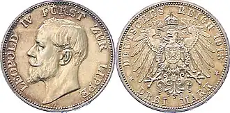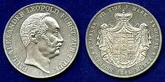 In der Münze Berlin (Münzstättenzeichen = „A“) wurden von 1843 bis 1913 die Reichsmünzen, die auch in Lippe Gültigkeit besaßen, geprägt, unter anderem die 1875 im ganzen Kaiserreich eingeführte Goldmark. Die Vorderseite, das Avers, konnte von den Gliedstaaten des Reiches gestaltet werden. In Lippe zeigten sie das Porträt des regierenden Fürsten.