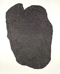 Die Auseinandersetzung mit der Linie als raumdefinierende und modellierende Einheit ist kennzeichnend für Lisa Pahlkes großformatige Papierarbeiten. Dicht aneinandergereihte Tusche- oder Filzstiftlineaturen ergeben organische Strukturen, die Beweglichkeit suggerieren und damit die Grenzen der Wahrnehmung herausfordern.[1] Topografische Landschaften, eine Plattentektonik, Muskelfasern oder fallender Stoff sind im Inneren der Gestalt zu erkennen.[2] Dabei reichen die Größen der Werke vom handlichen A2-Format bis hin zu raumgreifenden Dimensionen.