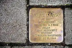 - Bis in die 1940er Jahre wohnten in dem heutigen Gebäude Podbielskistraße 274 Michael Umansky und seine Ehefrau Wilma, ein Schauspieler-Ehepaar jüdischer Glaubenszugehörigkeit. Beide wurden in der Nationalsozialisten deportiert. Er starb 1944 im Außenlager Hailfingen an Entkräftung. Die seinerzeit gleichfalls verfolgte Überlebende Ruth Gröne, geborene Kleeberg, übernahm die Patenschaft für den am 4. Dezember 2012 durch den Künstler Gunter Demnig vor dem letzten freiwilligen Wohnsitz Umanskys verlegten Stolperstein.[4]