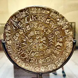 Umstritten ist dagegen die Einschätzung des bisher nicht entzifferten Diskos von Phaistós aus der kretominoischen Kultur, der auf das 17. Jahrhundert v. Chr. datiert wird, also aus einer Epoche stammt, die fast ein Jahrtausend vor der Entwicklung der griechischen Schrift liegt.