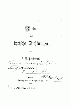 - Albert Emil Brachvogel: Lieder und lyrische Dichtungen
