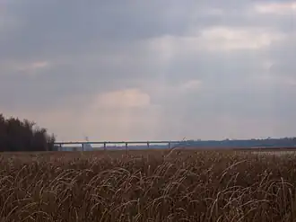 | Blick nach Süden über den Little Lake Butte des Morts auf die Roland Kampo Memorial Bridge | ||