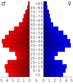 28,8 Prozent der Bevölkerung waren unter 18 Jahre alt. 6,6 Prozent zwischen 18 und 24 Jahre, 31,7 Prozent zwischen 25 und 44 Jahre, 24,6 Prozent zwischen 45 und 64 Jahre und 8,3 Prozent waren 65 Jahre oder älter. Das Durchschnittsalter betrug 36 Jahre. Auf 100 weibliche kamen statistisch 102,1 männliche Personen. Auf 100 Frauen im Alter von 18 Jahren und darüber kamen 99,7 Männer.