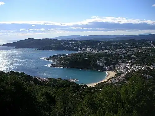 Der Ortskern von Llafranc liegt an einer 330 m langen und 40 m breiten Sandbucht, die von felsigen Steilküsten eingerahmt wird.