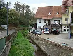 - (Zufluss), von rechts und Norden auf etwa 208 m ü. NN in Waldwimmersbach, ca. 2,2 km[LUBW 7] und ca. 1,7 km². Entsteht auf etwa 306 m ü. NN im Administrationswald. Im Dorf verdolt.