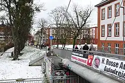 - Rückseitiger Eingang zur oberen Ebene des 3-gesch. Schlosspark-Centers der ECE von 1998 am Marienplatz mit über 110 Läden und 18 Gastronomien auf 20.000 m² Verkaufsfläche