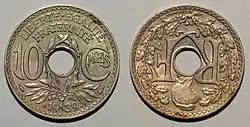 - Frankreich hatte bis zur deutschen Besetzung im Zweiten Weltkrieg eine 10-Centimes-Lochmünze.