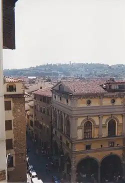 Zwei Tafeln in der Loggia erinnern an die älteste Bausubstanz der Loggia. Die erste ist mit den Insignien der Capitani di Torre (die den Getreidemarkt beaufsichtigten), der Florentiner Lilie und dem Kreuz des Volkes versehen.