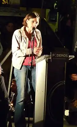 Zum Zeitpunkt der Wahl hatte sie keine politische Laufbahn vorzuweisen; noch weiter entfernt war sie davon, eine politische Karriere gemacht zu haben. Laut eigenen Aussagen in Vorstellungen und Interviews, hatte sie davor nur eine sehr kurze Erfahrung als Mitglied der PSOE gemacht, als sie noch Studentin der Politikwissenschaften war. Die mangelnde interne Demokratie habe sie aber bald wieder zum Austritt bewegt. Die Bewegung 15M habe sie wieder motiviert und sie habe dort mit Elan an den Protesten auf der Straße mitgemacht. Die Frische der politischen Vorschläge von Podemos habe sie jedoch dazu gebracht, bei den offenen Vorwahlen zu kandidieren.[3][5]