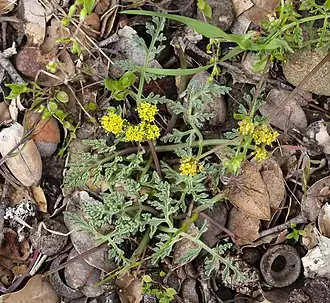 Lomatium triternatum(Pursh) Coult. & Rose: Es gibt zwei bis vier Varietäten, aber diese Verwandtschaftsgruppe wird kontrovers diskutiert:[2]
