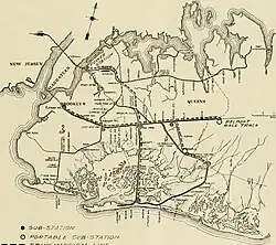 Die LIRR betreibt für ihre Versorgung mit Bahnstrom 104 Unterwerke.[33]:5 Nicht vollständig elektrifiziert sind folgende Strecken: