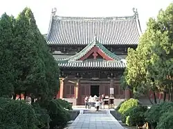 An dem gegenüberliegenden Ende der Achse ist die Haupthalle (Da bei ge), die auch als Foxiang Pavillon (Foxiang Ge) oder Tianning ge bezeichnet wird: eine 33 Meter hohe Holzkonstruktion, die eine Bronzestatue der Guan Yin beherbergt. Diese Bronze wurde im 4. Jahr der Kaibao-Regierungsperiode der Nördlichen Song-Dynastie (971) gegossen. Ihre Höhe beträgt über 20 Meter. Weil sie 42 Arme hat, wird sie auch „Guanyin mit tausend Händen und tausend Augen“ genannt (Qianshou Qianyin Guanyin). In der Halle führt eine Treppe um die Statue herum, was ihre Betrachtung von oben bis unten ermöglicht.