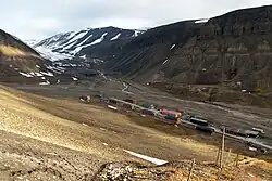 Permafrost ist im Tal weit verbreitet, sodass alle Versorgungsleitungen auf Pfählen über dem Boden verlaufen. Taleinwärts liegt der Ortsteil Nybyen, der in den 1940er Jahren als Unterkunft für die Grubenarbeiter errichtet wurde. Heute stehen diese Baracken unter Denkmalschutz und sind für anderweitige Nutzungen weiter in Gebrauch (Wohnheime für die Studenten des UNIS und Hostels).