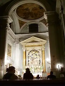 „In dieser Kirche ist der berühmte Giovanni da San Giovanni, begraben, dessen Grabstein auf der gegenüberliegenden Seite seines Werks zu sehen ist, sowie die hervorragenden Maler Antonio Franchi und Lorenzo del Moro“