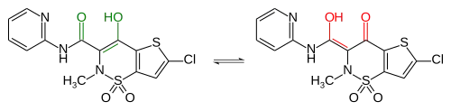 Wie bei anderen Oxicamen, liegen auch bei Lornoxicam Keto-Enol-Tautomere vor: