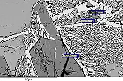 In dieser Analyse wurde festgestellt, dass der Meteorit „in vielerlei Hinsicht die geochemisch am weitesten entwickelte Probe ist, die bisher vom Mars entdeckt wurde“. In der Veröffentlichung aus dem Jahr 2000 in der Zeitschrift Geology wurde der Meteorit als „differenzierter, mit höheren Konzentrationen inkompatibler Elemente (z. B. La) und einer höheren Anteil an Spätphasen (englisch late-stage phases) wie Phosphaten und Kaliumreichem feldspathaltigem Glas“ (Plagioklas) beschrieben als frühere Marsmeteoriten wie Shergotty oder Zagami.[6][1] Das Pyroxen des Meteoriten ist mäßig mehr ferroan[7] (Eisen-II-haltig) als das in QUE 94201.[3][6][1] Außer diesen mit dem euhedralen[8] Maskelynit verbundenen Pyroxenkörnern befinden sich innerhalb des Meteoriten kleinere Symplektit-Flecken, die offenbar entstanden sind durch den Zerfall von metastabilem Pyroxferroit, Fayalit-Hedenbergit-Konglomeraten (englisch intergrowths) und winzigen Oxiden innerhalb eines recht vielfältigen mineralogischen Rahmens befinden sich die Phosphate (insgesamt ~5 vol%). Sie gehören zu den auffälligsten der verschiedenen akzessorischen Phasen. Während die beiden Steine in den identifizierten mineralogischen Phasen nahezu identisch sind, ist der kleinere Stein reicher an Eisen, Augit und rätselhaften Produkten des Pyroxferroit-Zerfalls.[2]
