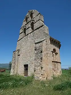 - Etwa 800 m nordöstlich steht die kleine, aber größtenteils aus exakt behauenen Steinen errichtete romanische Ermita de San Facundo, deren wie abgeschnitten wirkende Westfassade von einem vierteiligen Glockengiebel (espadaña) überragt wird. Wahrscheinlich war die Kirche deutlich größer geplant und tatsächlich sind ein großer Chorbogen sowie die Maueransätze der Langhauswände noch deutlich zu erkennen.[7]