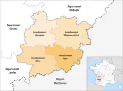 | Unterpräfektur(en) | Marmande Nérac Villeneuve-sur-Lot |