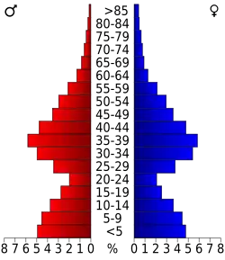 Auf das gesamte County bezogen setzte sich die Bevölkerung zusammen aus 29,8 Prozent Einwohnern unter 18 Jahren, 5,7 Prozent zwischen 18 und 24 Jahren, 38,9 Prozent zwischen 25 und 44 Jahren, 20,0 Prozent zwischen 45 und 64 Jahren und 5,6 Prozent waren 65 Jahre alt oder darüber. Das Durchschnittsalter betrug 34 Jahre. Auf 100 weibliche Personen kamen 97,8 männliche Personen. Auf 100 Frauen im Alter von 18 Jahren oder darüber kamen statistisch 95,5 Männer.