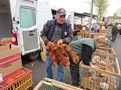 - Jeden Montag findet in Louhans der drittgrößte Markt Frankreichs statt[38]. Dabei gelangen Lebensmittel, Kleider und andere Waren zum Verkauf, aber auch Tiere, insbesondere ein Geflügelmarkt mit Bresse-Hühnern. Der Markt findet seit 1269 statt und zählt heute rund 150 Marktfahrer.
