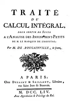 • Traité du calcul intégral, pour servir de suite à l’Analyse des infiniments petits de M. le marquis de l’Hôpital. 2 Bände, Desaint & Saillant, Paris 1754–1756 (Band 1, Band 2).