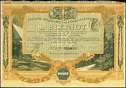 Aktie der S.A. par Actions "Aeroplane" vom 1. Juni 1912; abgebildet ist Louis Blériot mit seinem "Blériot VIII"[8] -